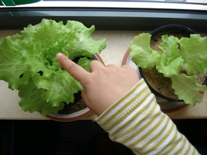 Foram evidentes as diferenças no crescimento das duas alfaces. A que foi plantada na terra da horta ficou rapidamente com mais e maiores folhas, estando os vasos sempre lado a lado e mantendo-se a rega igual para as duas alfaces.