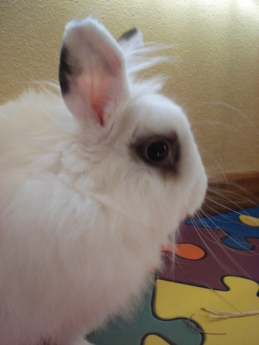 Descobriram que tinha olhos pretos, orelhas altas, brancas e pretas com rosa lá por dentro; as patas de trás eram mais compridas do que as da frente e o rabinho era uma bolinha pequenina de pêlo. Tinha bigodes brancos bem compridos e sempre a mexer, assim como o seu "nariz". Também tinha uma pôpinha no alto da cabeça, assim como o Daniel nesse dia.