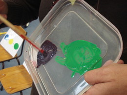 Foi fantástico! Todos os Pequenos Jornalistas puderam depois também fazer magia, misturando tintas com as cores dos pontinhos do livro! Foi assim que apareceram as cores verde, laranja e roxo.