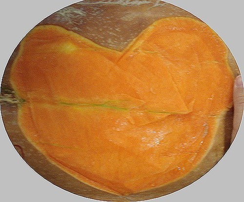 Mas qual não foi o nosso espanto quando ao abrirmos a abóbora ao meio vimos exatamente a forma do coração no seu interior!...
