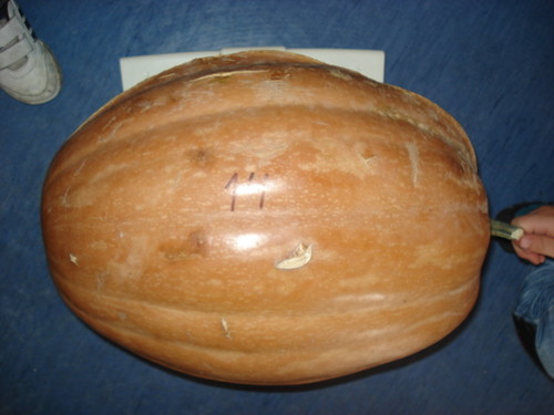 Tinha crescido na horta da avó dela, agarradinha a uma planta rasteira, muito baixinha (a aboboreira). Era um presente para todos, que muito agradecemos.
