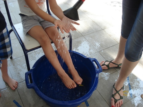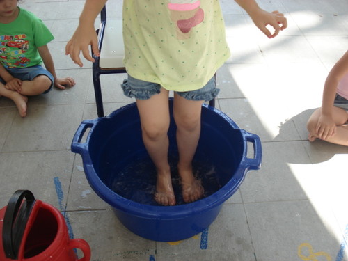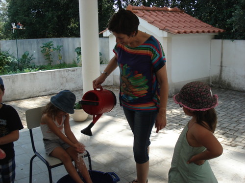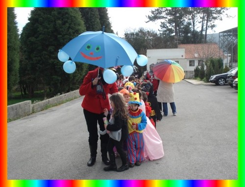 Depois desta experiência conhecemos a história da Gotinha Cristal e fizemos a expressão dramática da história improvisando adereços com panos grandes de cores diversas (azul esverdeado do rio, branco da nuvem, amarelo do sol, cinzento e preto para a mudança de cores da nuvem, o chapéu arco-íris da Carolina!...). Foi mais um dos Momentos Felizes que pudemos viver em conjunto, descobrindo e conhecendo o Mundo de uma forma envolvente...