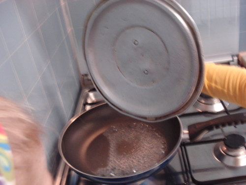 Muitas gotas de água evaporaram e foram parar à tampa fria do tacho condensando-se e pingando como chuva!