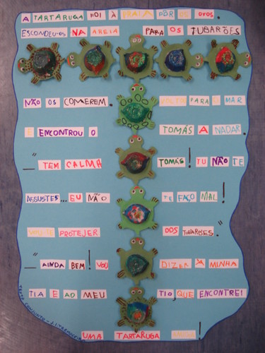 Os Pequenos Jornalistas "mergulharam" então nas palavras (assim como na piscina a sério e na de faz de conta que inventámos na sala de atividades) e criaram dois textos; um é sobre um pinguim e outro é sobre uma tartaruga.